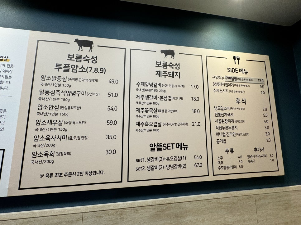 메뉴는 이정도... 우리는 이날 수제양념갈비를 주문했습니다. 디저트는 누룽지..!!