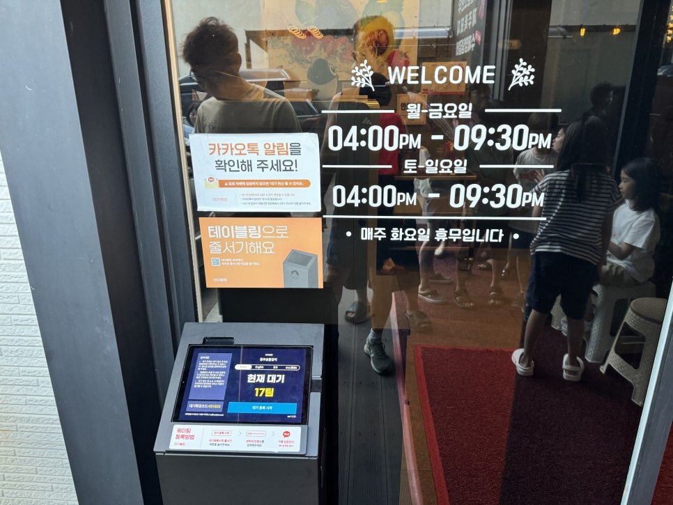 이렇게 밖에서 전화번호를 등록해서 웨이팅하고 있으면 카카오톡을 알림을 줍니다.
