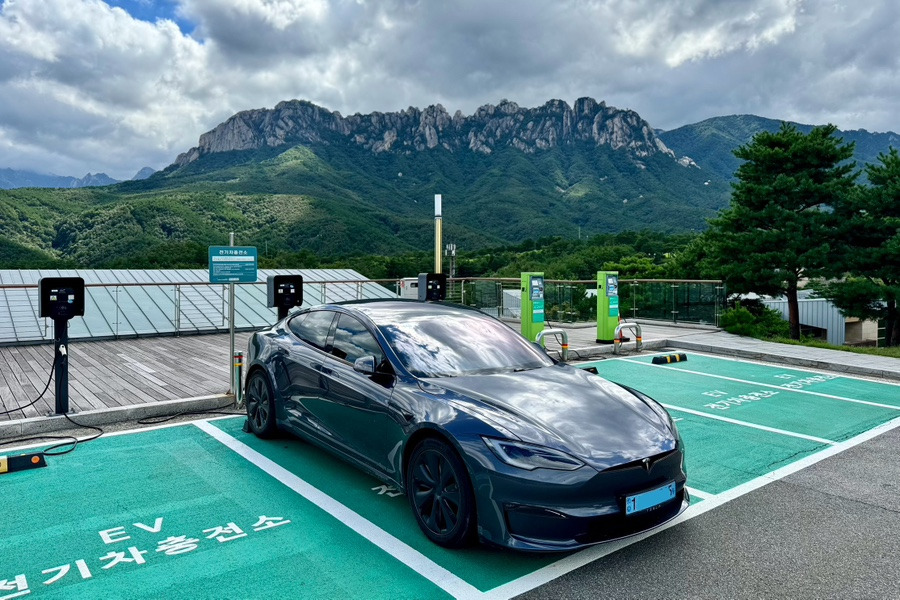 오늘도 아름다운 테슬라 모델S 와 울산바위 사진 공유해 드립니다
