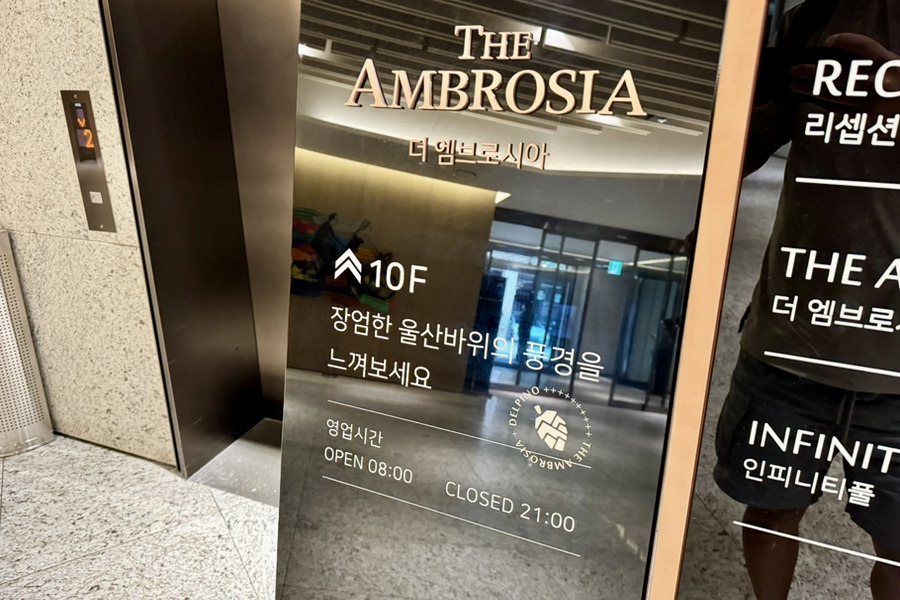 설악산 울산바위를 가장 멋지게 조망할수 있는 소노펠리체 리조트 10층에 위치한 #더엠브로시아 카페를 소개합니다. 소노리조트 안에 있기 때문에 주차공간은 널널합니다. 정문으로 들어오면 가강먼저 만나는 오른쪽 높은 건물이 소노펠리체 건물입니다. 인피니티풀이 함께 있기도 합니다. 이스트타워 지하 또는 외부 주차장에 주차를 하고 지하주차장과 연결된 엘리베이터를 타면 바로 엠브로시아에 다다를수 있습니다.