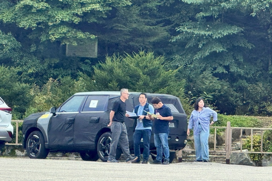 그리고 기아의 새로운 전기차가 위장막을 쓴채로 테스트하는 모습도 함께 발견했습니다. 텔룰라이드가 이 테스트중인 전기차를 호위하면 함께 주행하는 모습인거 같았습니다. 이 새로운 전기차 주변에서 여러분들이 서류를 들고 체크도 하고 이야기도 하시고 나름 열일하는 모습을 보이고 있었는데요. 사이즈가 얼핏 EV9 이랑 비슷한거 같았는데 다시 보니 좀 작은거 같습니다. EV7 정도 되는것일까요?