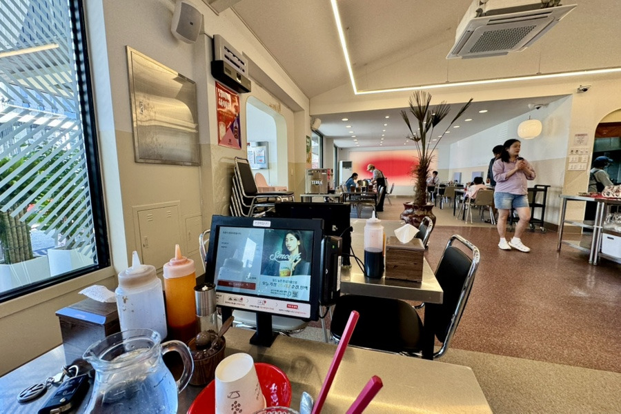 기존 매장은 오르막길에 위치해서 들어가기도 불편하고 매장도 크지 않았었는데 이번에는 더 넓고 크고 밝고 깨끗한 내부가 맘에 듭니다. 테이블마다 마련된 타블렛 키오스크로 주문과 결제를 바로 하실수 있어서 식사가 끝난후 그냥 휭 나가실수 있습니다.