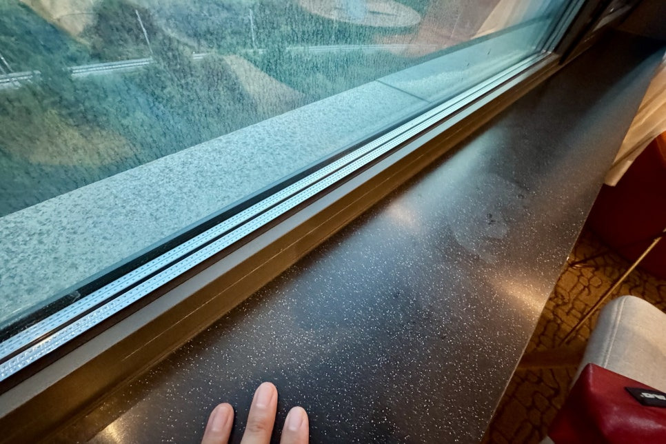 창문이 큰대신 완전히 열수는 없는 구조입니다. 안전을 위한것이겠죠. 침대옆에 작은 테이블과 의자가 놓여있는 의자에 얼룩이 지워지지 않고 그대로 남아 있어서 실망스러웠습니다.