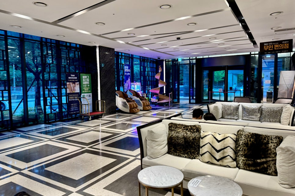 굉장히 깔끔하게 정비되어 있는 로비에 들어섭니다. 조명과 반짝이이는 인테리어가 많아서 인지 꽤 화려한 느낌도 듭니다. 직원분들도 친절하시고 절차가 빠르고 신속합니다.