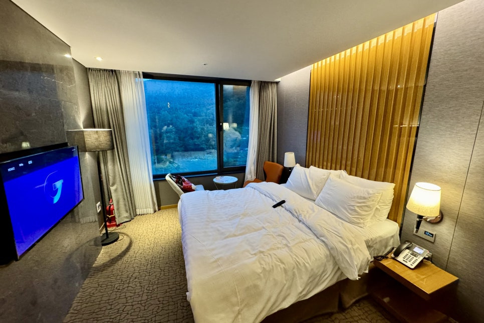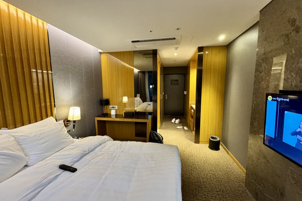 혼자 묶었기 때문에 크지 않은 슈페리어 더블룸을 선택했는데 크기는 크지 않지만 있을거 다 있는 딱 좋은 룸입니다. 시스템 냉난방이고 침대옆 스위치로 모든 조명을 컨트롤 할수 있습니다. 콘센트도 침대 양 옆에 있으며 거울테이블 화장실앞 테이블 등등 많이 준비되어 있어요.
