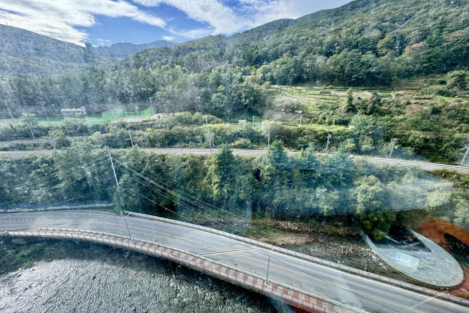 창문에 지장천과 기찻길 그리고 산이 보여서 역시 강원도 정선이구나 싶습니다. 숲에 있는 느낌이 들어요. 정선사북은 하이원과 강원랜드가 있는곳이라 완전 시골은 아니고 꽤 번화한 도시거든요.