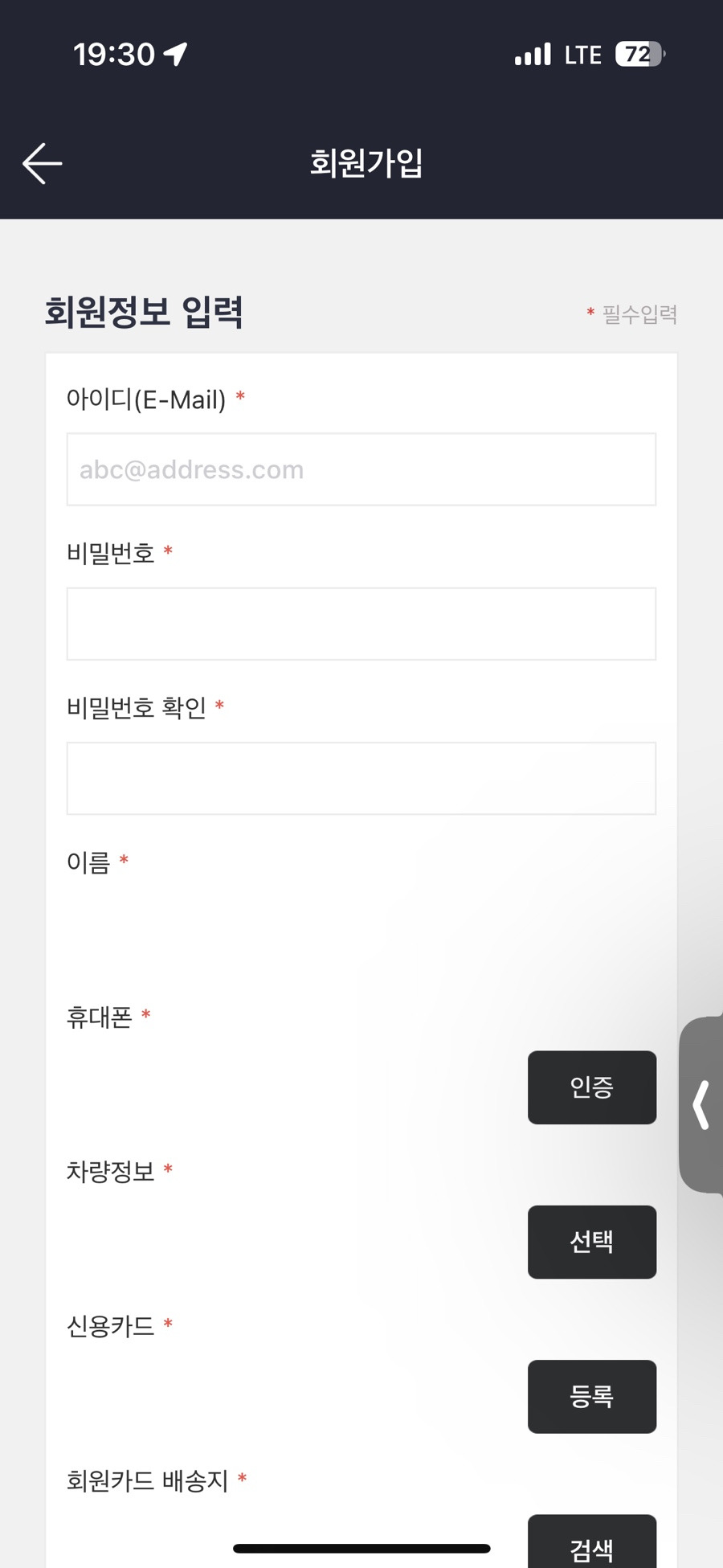 내 고향 전주에 갔다가 한지 홍보관에 들렸어요. 이곳 완속충전기는 #EVZone 이라는 처음 써보는 기계라 앱을 설치하고 가입을 시도 하는데….. 사진을 보시면 아시겠지만 이메일 아이디 이름 비밀번호 핸드폰 패스 인증 차량정보 신용카드 카드 배송지 모두 다 넣어야 되는데 비밀번호는 알파벳 대문자 소문자 숫자 특수문자를 모두 포함한 열 자리 이상을 만들어야 되고 카드 정보는 카드 번호 16개 유효기간 비밀번호 두자리 등 모두 다 입력을 해야 합니다. 그런데 이 하나도 잘못 되면 비밀번호부터 처음부터 다시 입력 해야 돼요.