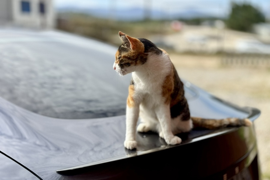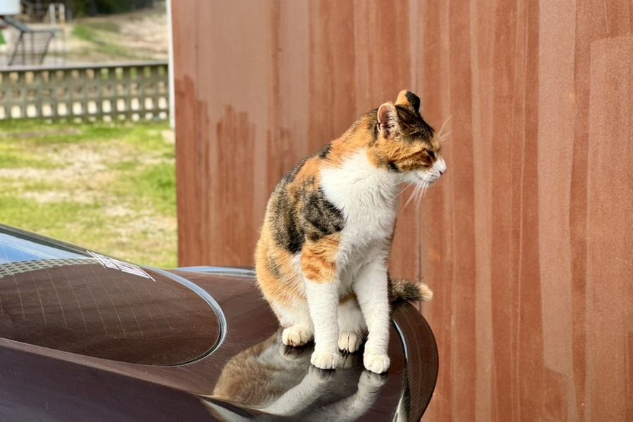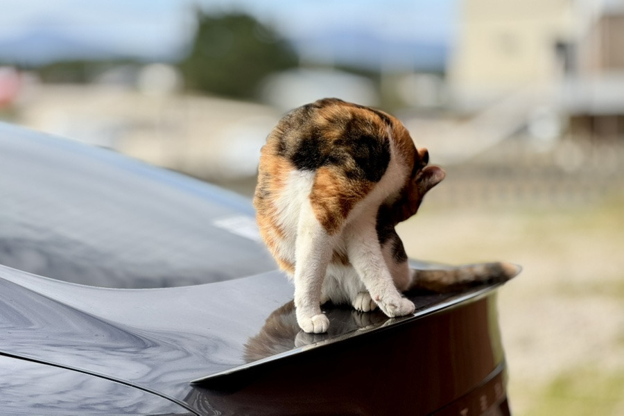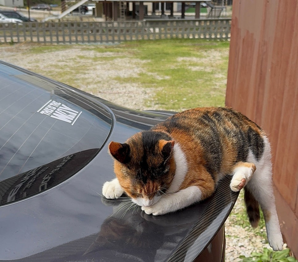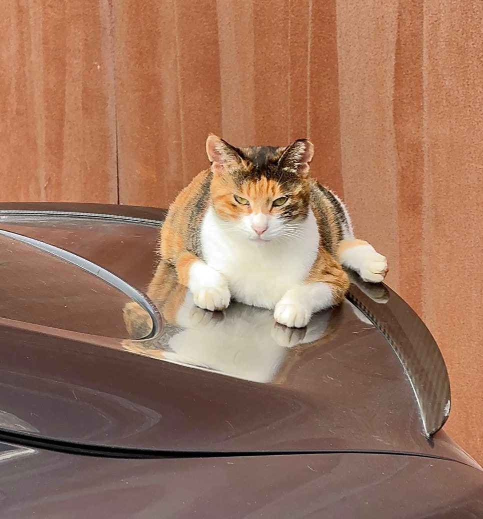 내차위에 편안하게 올라가 일광욕을 즐기는 냥이녀석