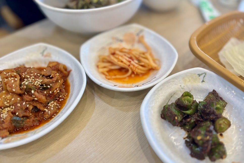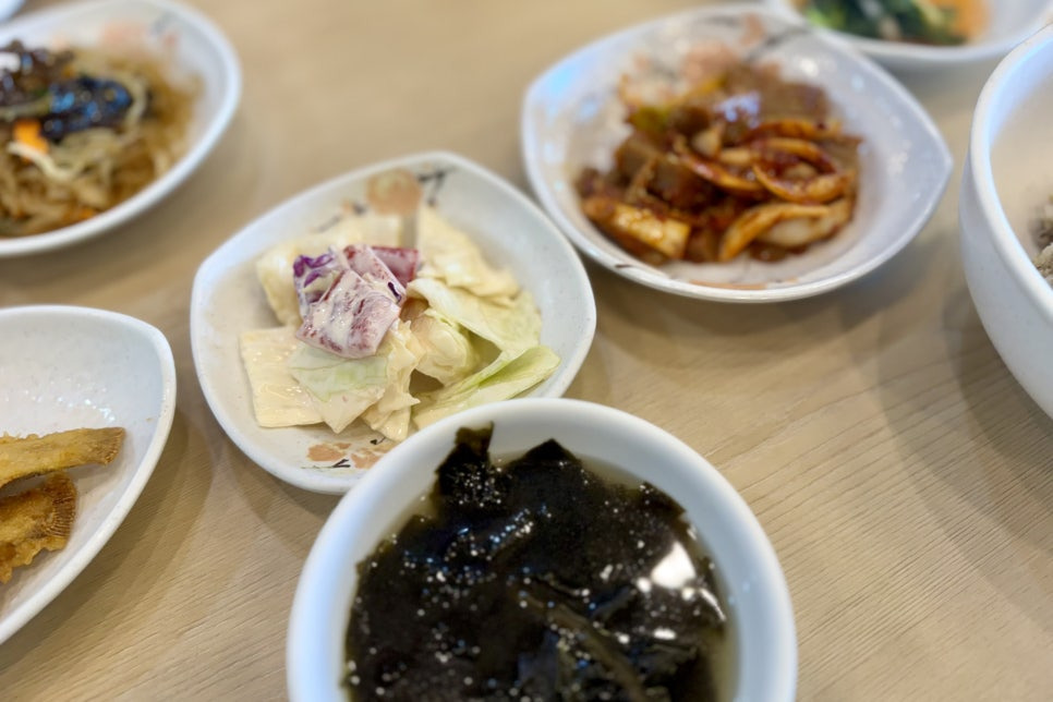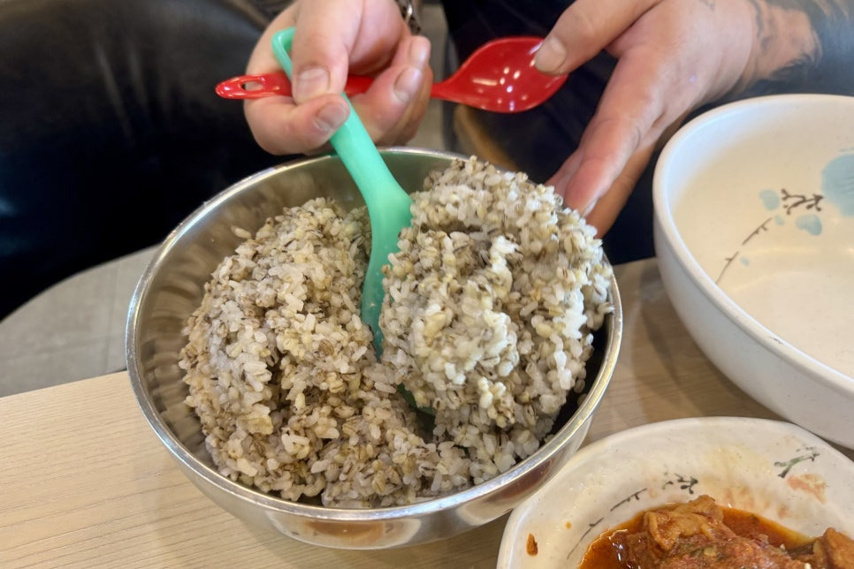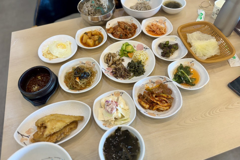 매장 넓고 깔끔합니다. 전형적인 광광지 식당의 모습이고요. 기본반찬은 셀프로 직접 가져다 먹을수 있고 가자미 튀김과 보리밥이 무한으로 제공됩니다. 원래 보리밥 정식 하나의 메뉴였는데 곰탕과 전골이 최근 추가되었군요.