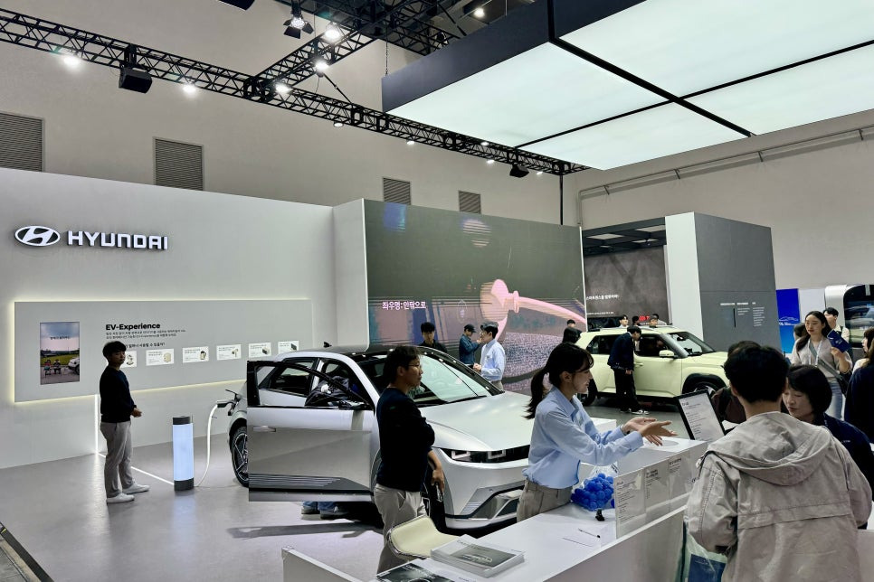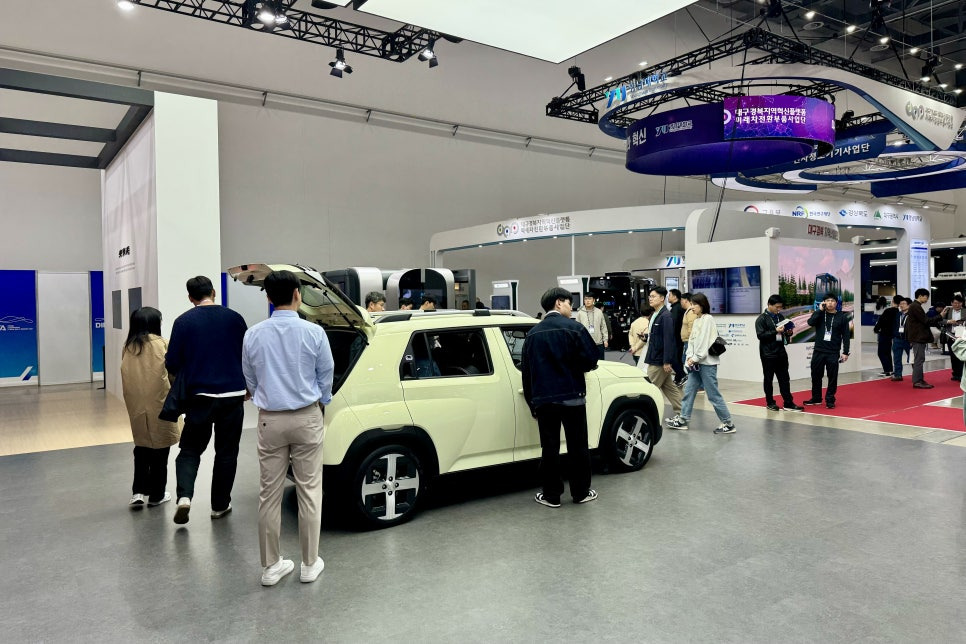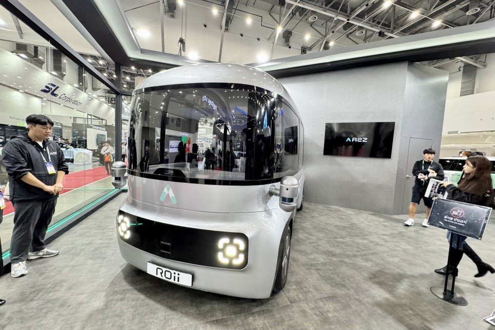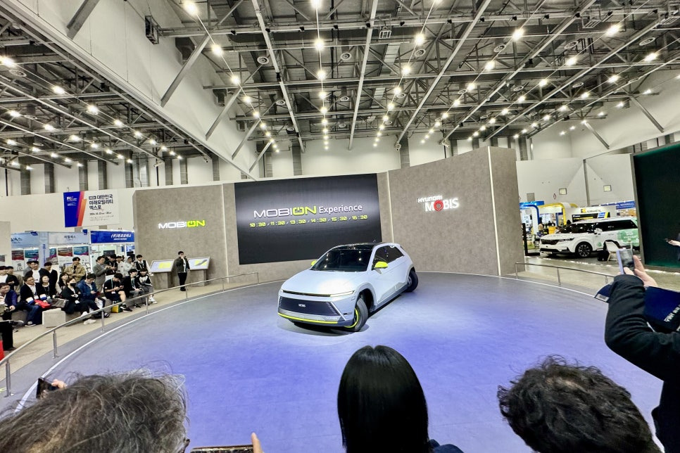 현대모비스의 인휠모터를 탑재한 아이오닉 입니다. 제자리에서 360로 회전을 할수 있는 매우 신기한 차량이었습니다.