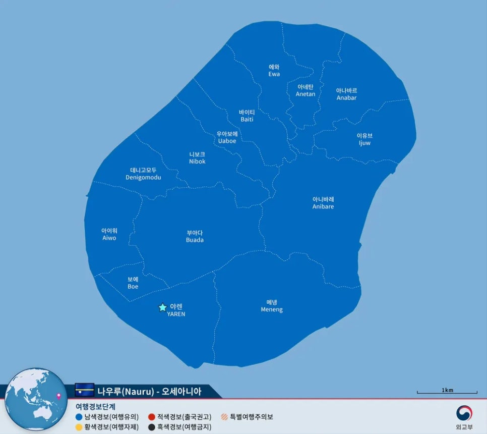 나우루는 남태평양에 위치한 작은 섬나라로, 호주 북동쪽 약 3,000km 지점에 자리 잡고 있습니다. 나라는 세계에서 세 번째로 작아, 면적이 약 21제곱킬로미터에 불과해요. 전체가 하나의 섬으로 이루어져 있으며, 가장 높은 지점의 해발고도도 약 70미터밖에 되지 않아 해수면 상승에 매우 취약합니다.