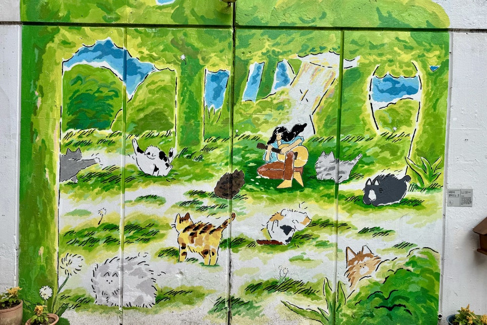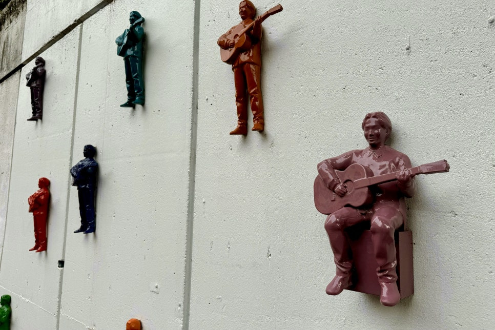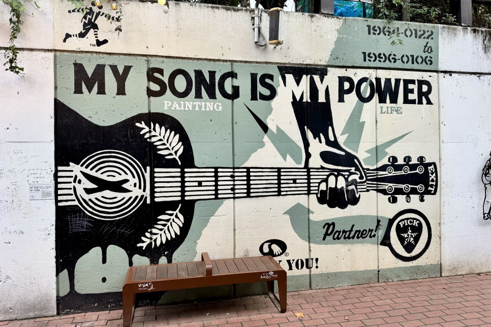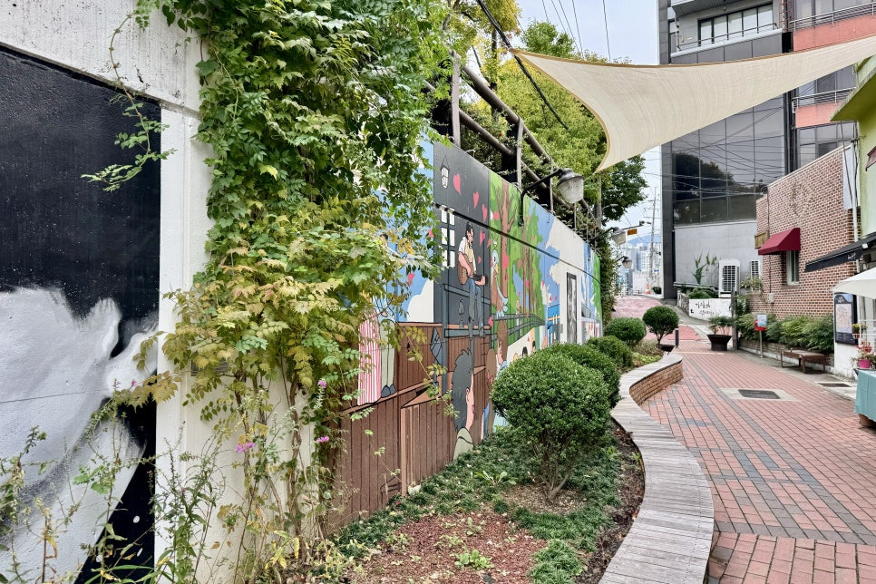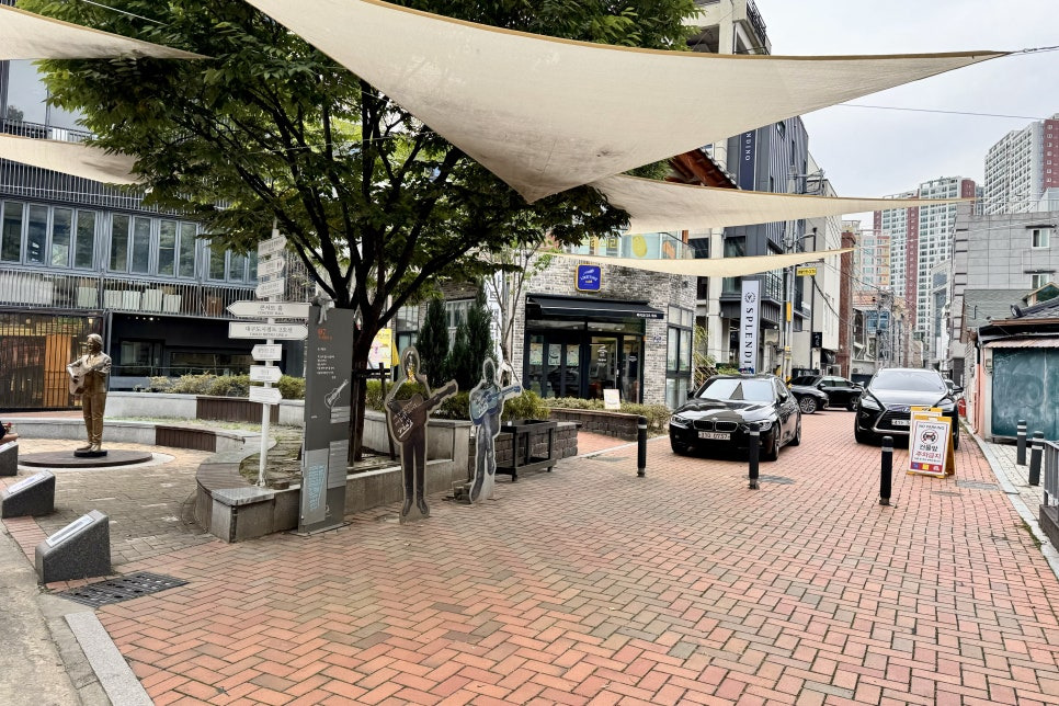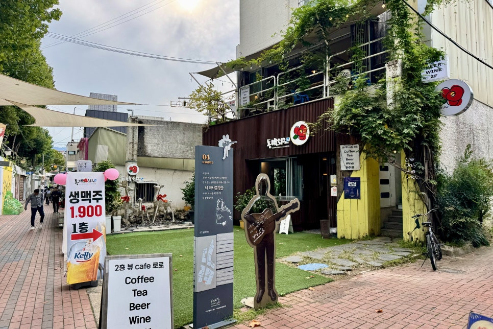 거리에는 김광석의 모습을 담은 벽화와 조형물들이 곳곳에 설치되어 있어요. 그의 상징적인 이미지를 담은 벽화들은 그의 삶과 음악적 여정을 회상할 수 있게 해줍니다. 예를 들어, “서른 즈음에”, “이등병의 편지” 등 대표곡을 테마로 한 벽화나 조각들을 통해 그의 노래와 가사 속 감정을 다시 한번 느낄 수 있도록 구성되어 있어요.